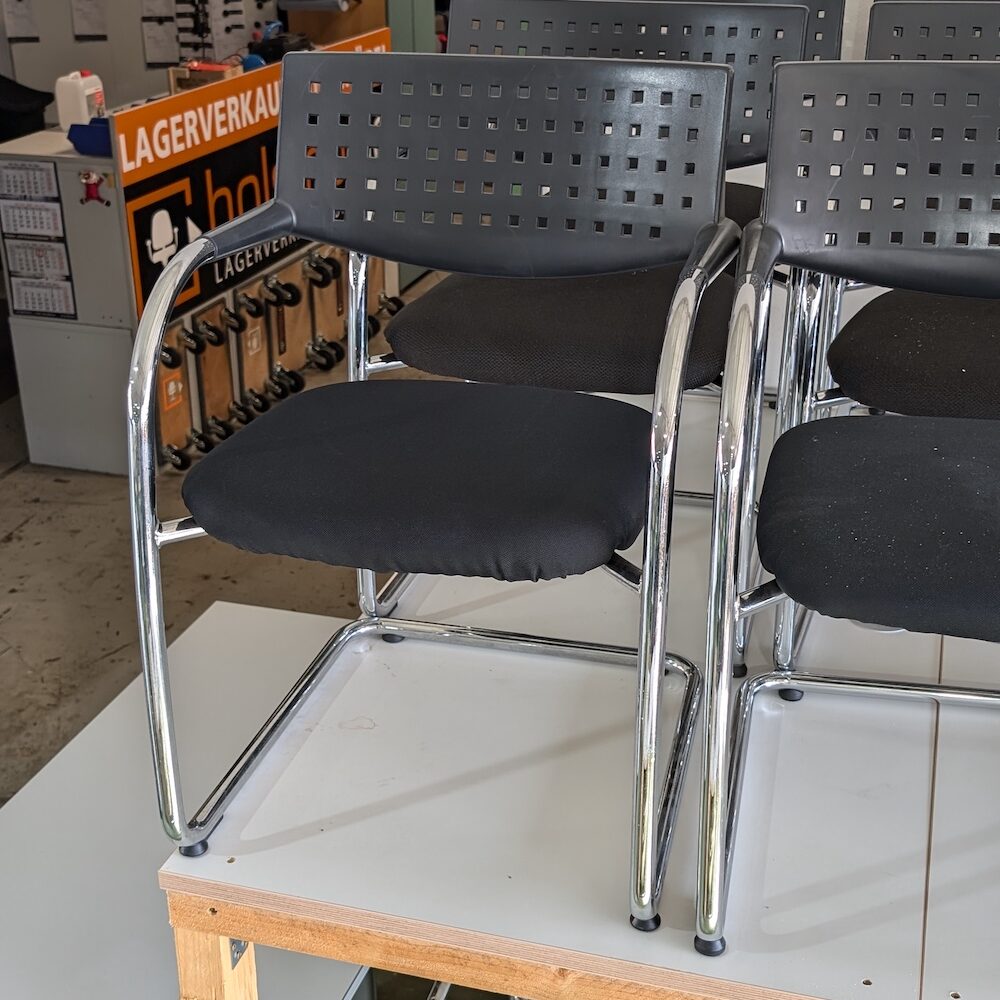 Vitra Vis a Vis Freischwinger Besucherstuhl Gebrauchte Freischwinger mit Kunststoff Rückenlehne Stoff gepolstert schwarz Chrom Gestell Mehrfach vorrätig 95 Euro zzgl. Mwst.